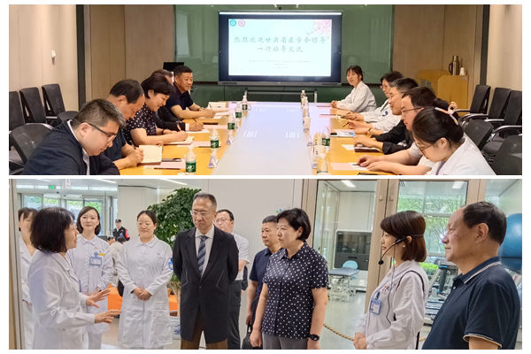 在江苏省人民医院,副院长梁宁霞系统介绍了该院优势专科领域、学术内涵提升、慢病管理"江苏模式"等先进经验,健康管理中心主任、中华医学会健康管理学分会副主委、江苏省医学会健康管理学分会主委张群详细介绍了健康管理学科体系化建设和人才培养、前瞻性健康管理队列、创新与规范化等方面的实践成果。双方就人才培养、多学科协作机制、健康大数据应用等方面进行了讨论。郭玉芬会长特别指出,该院将预防与治疗相结合,个体与群体相结合,单纯管理与生活方式相结合的健康管理模式,为学会健康管理学科的建设提供了宝贵经验。在江苏省医学会秘书长韩毅陪同下,参观了该院健康管理中心的标准化服务流程和智能监测系统。