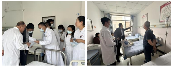 授课结束后,徐瑞峰主任和摆翔主任深入病区开展教学查房工作,并针对儿童重症医疗质量进行质控指导。通过现场查看病例、分析病情、提出诊疗建议等方式,有效提升了当地医务人员对儿童病例的诊疗能力,助力基层医疗机构规范诊疗流程。